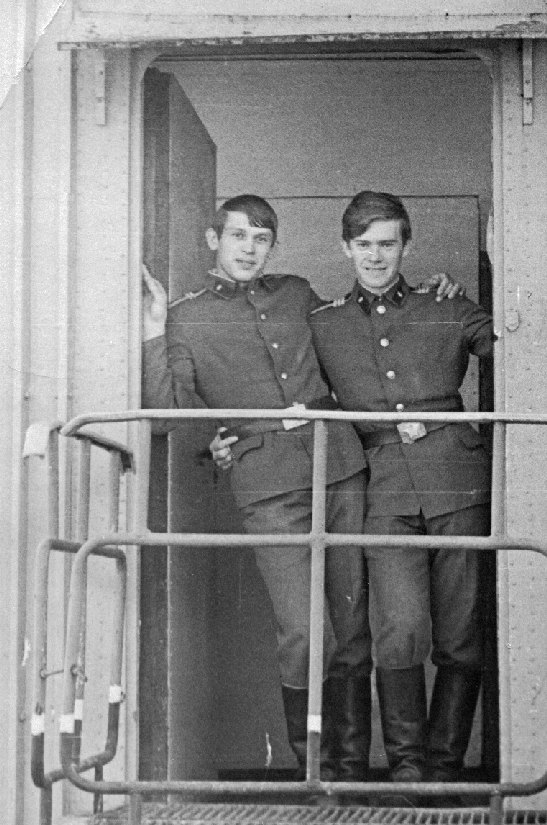182 Стажировка в Актюбинске. 114-я учебная группа УВВКУС. Слева - с-т Климов, справа - мл.с-т Успенский. 1976 год |