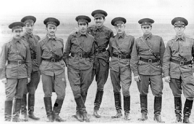 Слева-направо: Анатолий Тюляев (Москва, служил в Московском штабе), Танько, Михаил Певзнер, Михаил Ривман, Владимир Лапидус, Глаголевский, Сеня Ткач, Вениамин Рубин.