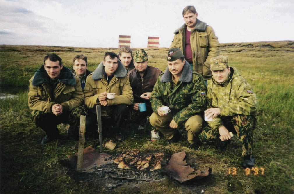 025 Прибытие регламентного расчёта на Полоску: к-н А.Яровкин, к-н И.Паршуков — зампотех "Полоски", майщр Меринов - нач.расчёта, к-н В.Безуглый 1987 год |