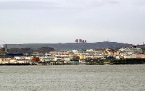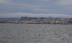 138 Вид на Анадырь с моря. Над городом возвышаются полосатые антенны станции "Юкон".Автор снимка: Дмитрий Гурин |