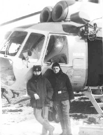 008 Ряд. Милорадов (справа) на фоне вертолета доставившего из пос.