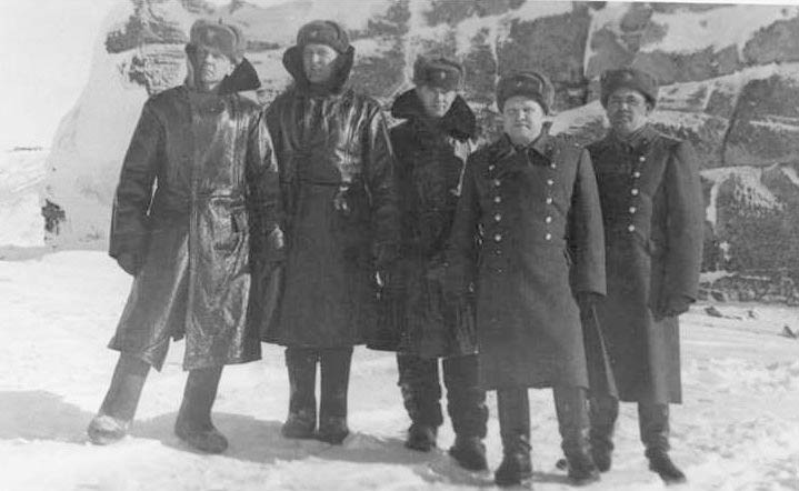 003 Комиссия: м-р Шамарин В.А., п/п-к Трегубов В.В., м-р Воронков Ю.А., офицеры 54395, у развалин ГУЛАГА. 1978 год