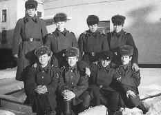 078 Ноябрь 1971 года. Поездка на Протоку. Слева направо: призыв весны 1970 – с-т Николай Дедович, с-т Виктор Полин, ???, сидят призыв весны 1971 – с-т Анатолий Надоба, мл. с-т Анатолий Савичев, С-т Владимир Шмыга, с-т Рустам Ганиев. |