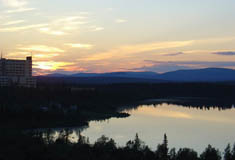 143 Восход над рекой. Вдали, слева сопка на которой стояла "Канва". 20 января 2010 года. Автор - Игорь Логинов |