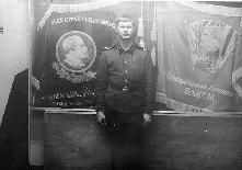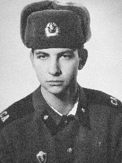 064 Ряд. Олег Шелухин у знамени части. 1980 год