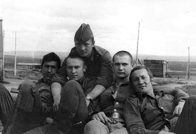 065 у входа в казарму "Амура". Крайний слева - Ал.Синюшкин. 1982 год