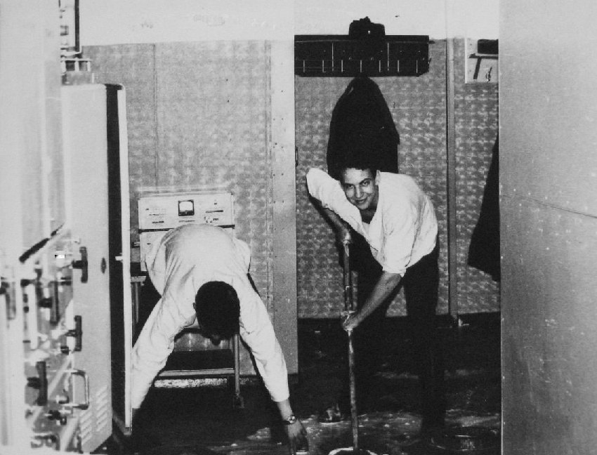 073 Сдача смены в техздании молодыми радистами Г.Шаманским и М.Гераськиным. Полы должны блестеть как … сами знаете что. Декабрь 1981 года |