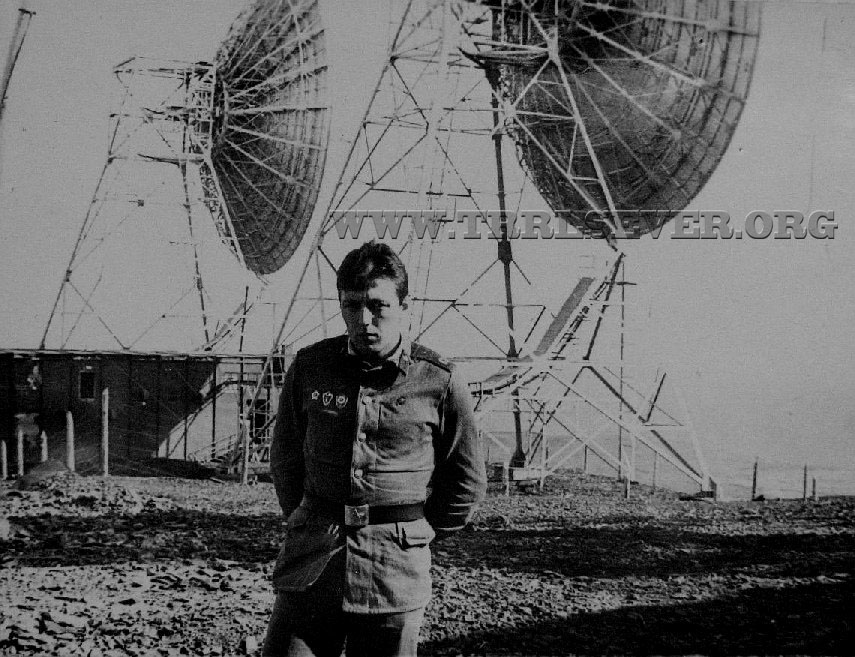 005 Техник ДС Ротар Анжело, на фоне антенн тропосферной линии Тикси - Депутаский. Лето 1982 года |