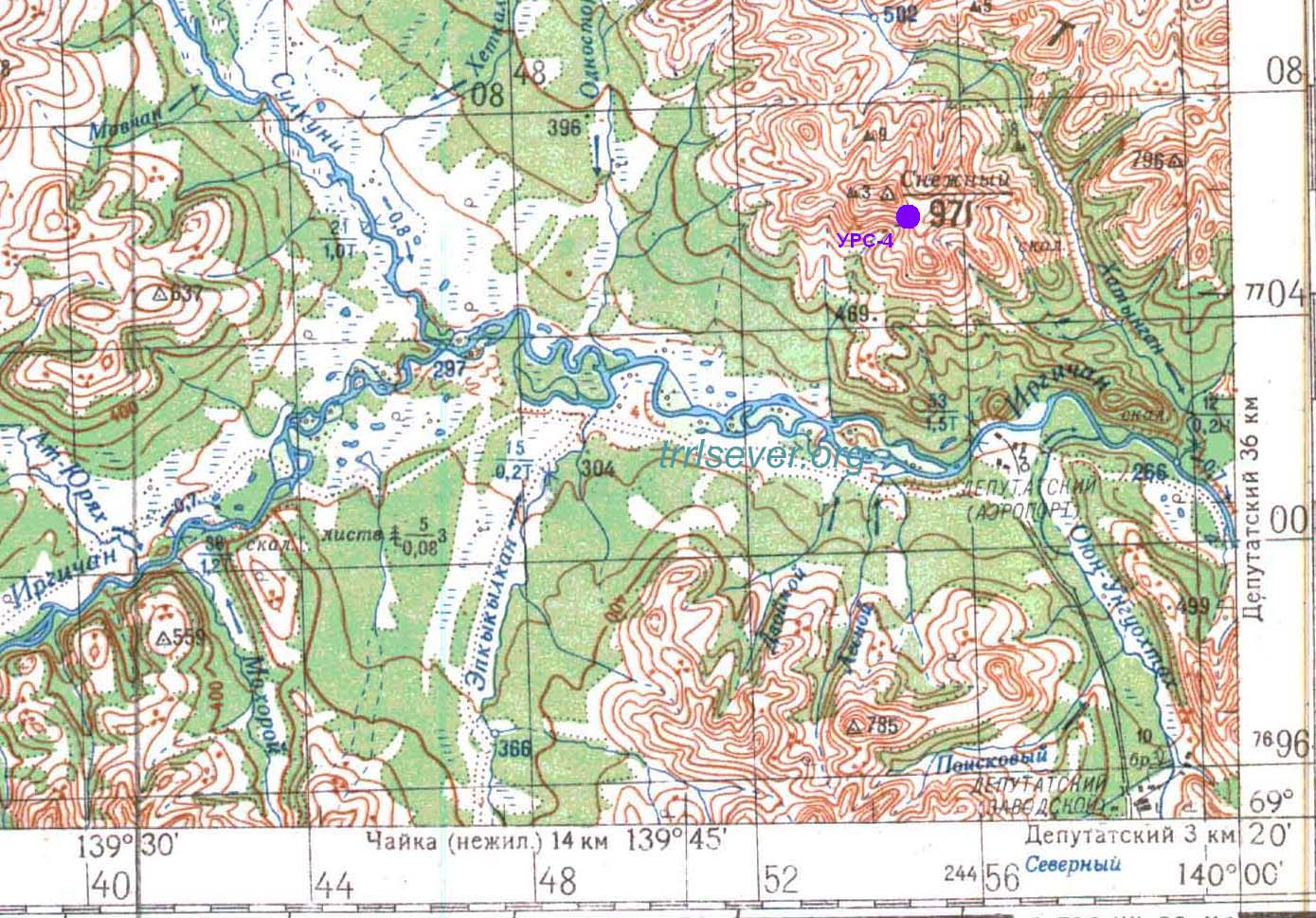 УРС-4 располагалась на сопке (970м) в 5 км к северу от аэропорта Депутатский