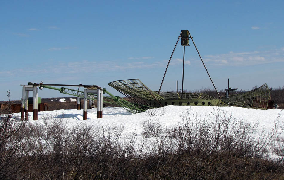 012 Заваленная антенна тропосферной станции в пос. Караул. 21 июня 2009 года |