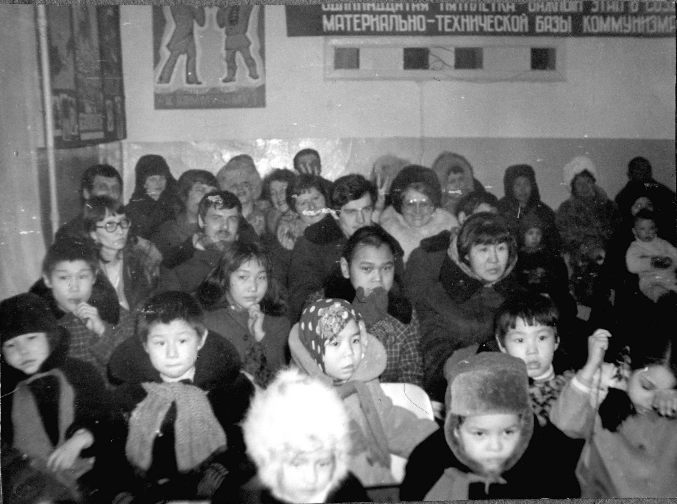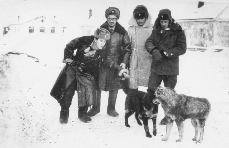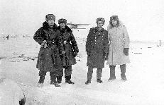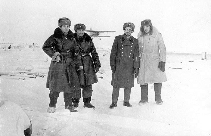 051 Л-т Пискунов,ст.л-т Пагомий провожают проверяющих с "Юкона-1" л-в Кудрина и Сердюка в поселке Ванкарем, 1974 год.