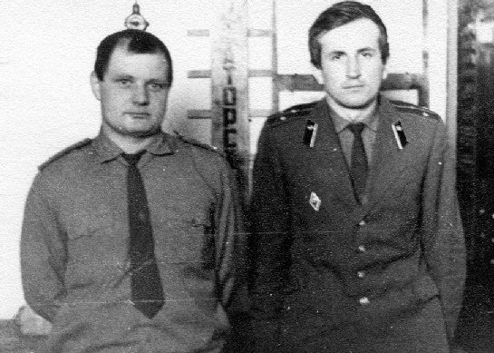 068 Ст. л-т Судаков с грустью провожает на дембель друга, ст. л-та Пискунова, оставаясь служить и ждать замены. |