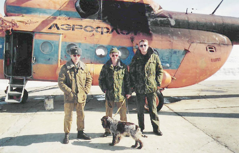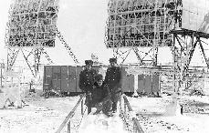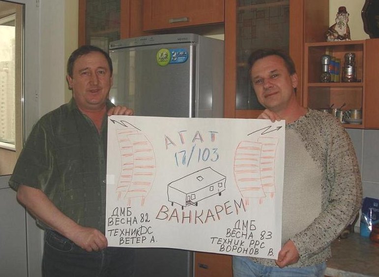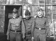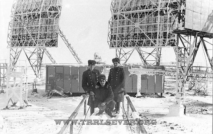 070 Ст. л-т Пискунов, с-т Шауэр, ст. л-т Судаков на фоне техздания и антенн |