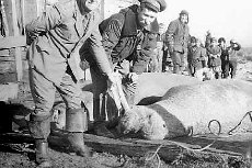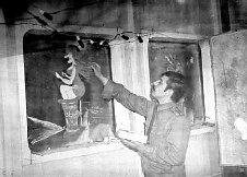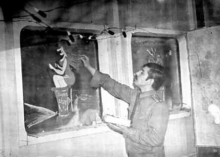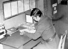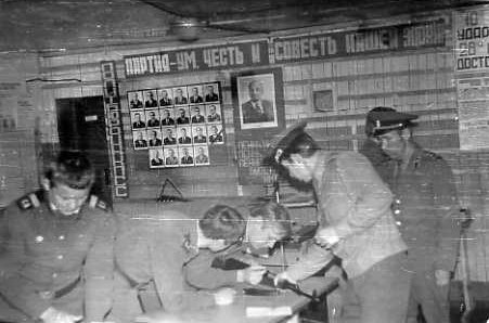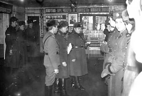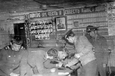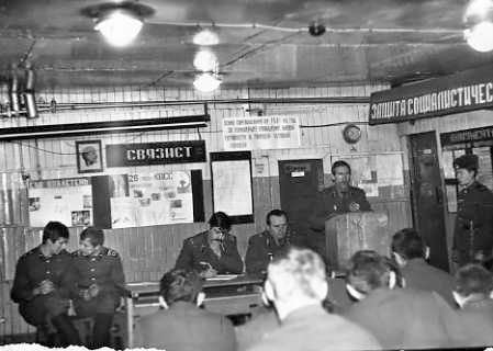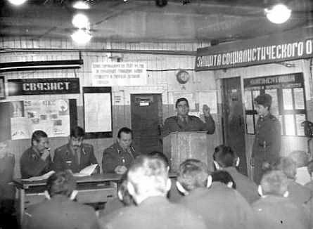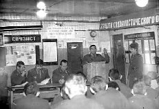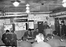 113 Комсомольское собрание. Евгений Федоров - секретарь, выступает замполит к-н гусев, в президиуме командир м-р Логвиненко |