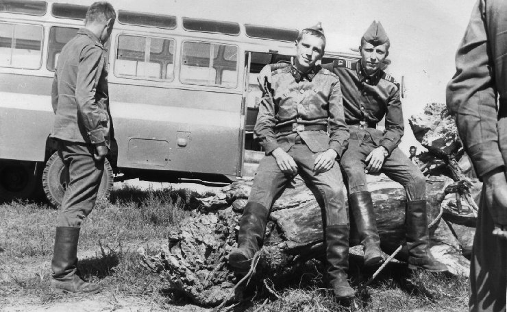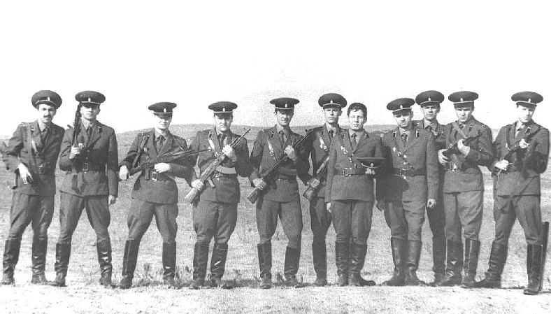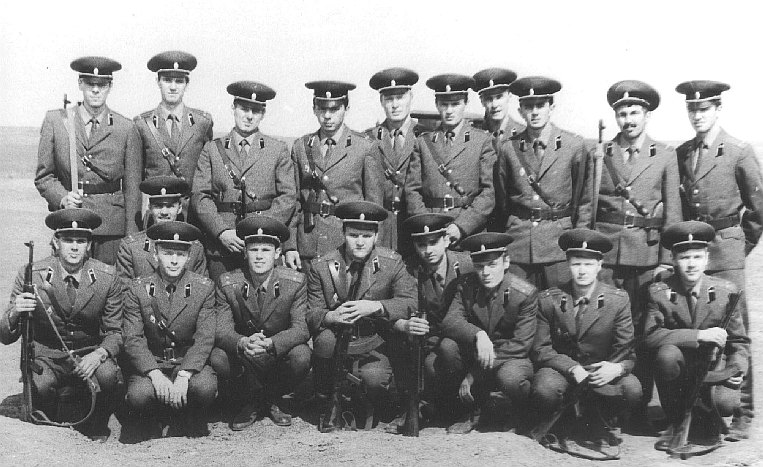 108 Актюбинск, 1985 год. Инструкторы на ТЗ. Крайний слева - Прутьян, крайний справа – Никифоров. |
