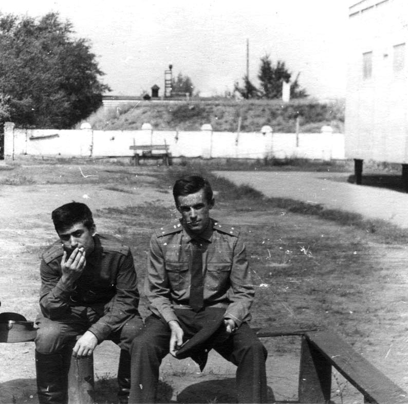 164 Актюбинск, 1972 год. В курилке л-т Л.Шураков и л-т С.Жуков |
