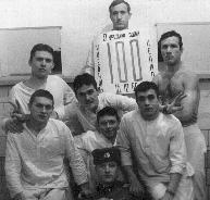 167 Внизу: Косачев Сергей, Болотников Алексей (в форме), Киямов, в центре друг над другом Шилоносов Владимир, Комаров Александр, с плакатом Прохоревич Сергей, слева от него Стародубцев Сергей, справа Дубков Сергей. 1980 год |