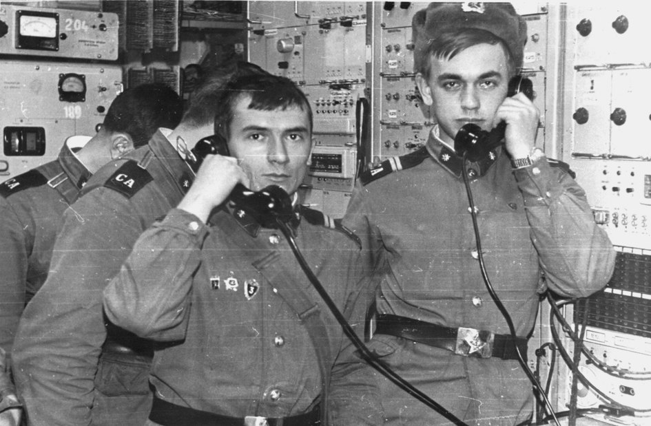 175 В учебном классе станции ДС. Принимает экзамены у курсанта проверяющий из Москвы. 1980 год |