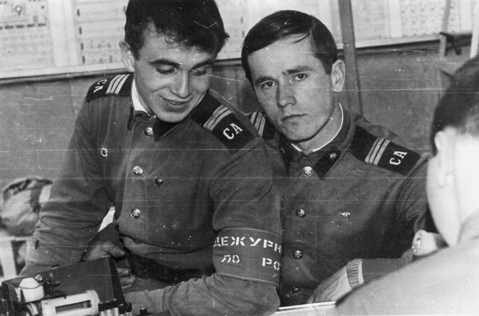 173 В ленкомнате 2-й роты. с-т Киямов, с-т Светлов Анатолий. 1980 год |