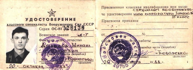 Удостоверение классного специалиста л-та Давыдова М.