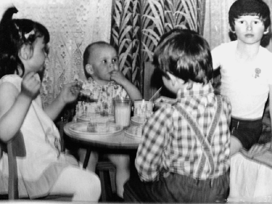038 Дети "Алмаза": Островерх Алина, Денисюк Алина, Соколов Дима, Островерх Алешка. 1985 год |