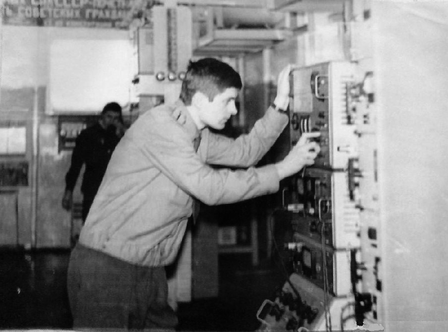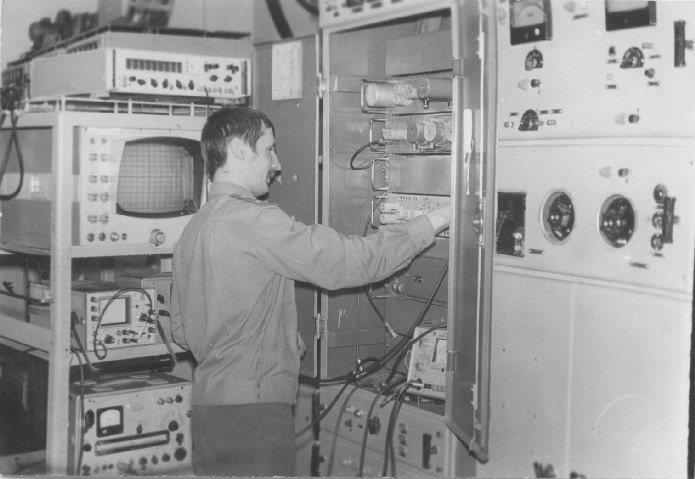 040 С.Бессуднов, В.Кулаков и В.Мелекесцев в зале приемников техздания. 1984 год |