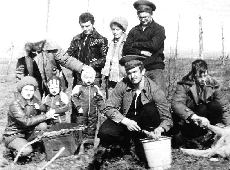 036 На шашлыках: Белова Л. С сыном, Яшина Галина с дочерью, ст. л-т Павлюков С, жена Бордусенко, прап. Островерх, майор Мисник с собакой |