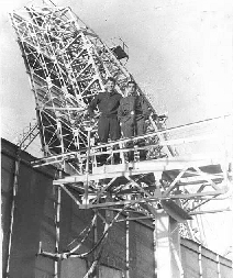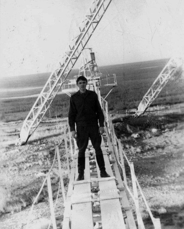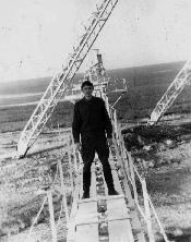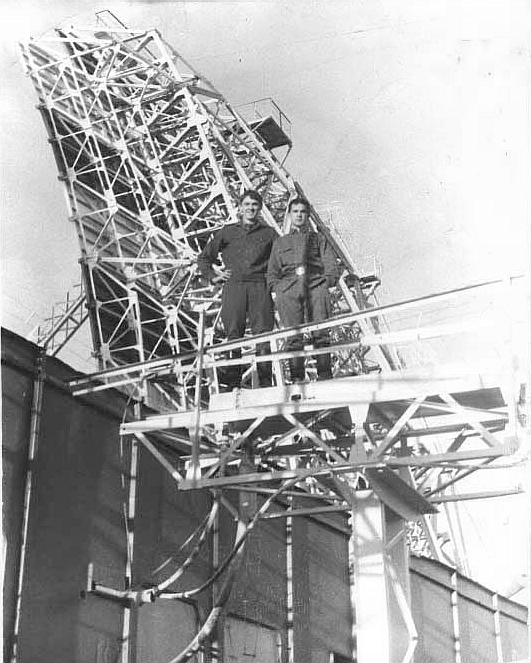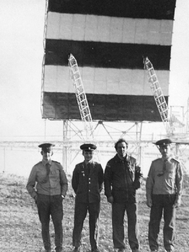 035 На фоне "Малахитвских" антен: прап. Островерх, нач расчета…?, Соколовский, ст. л-т Башлаков А.З. |