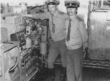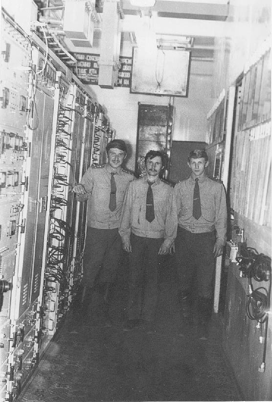 032 Нач. 1-й смены ст.л-т С.Бессуднов и нач. 2-й смены ст.л-т В.Кулаков в ДГК во-время пересменки. Лето 1984 года |