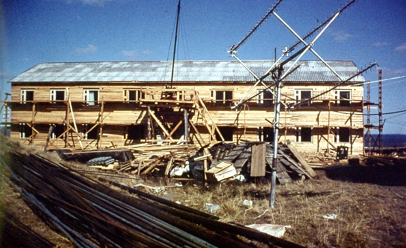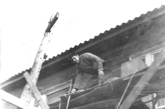 057 Командир «Алмаза» м-р Бобаренко. Общественные работы. Утепление стен дома офицерского состава. Лето 1989 |
