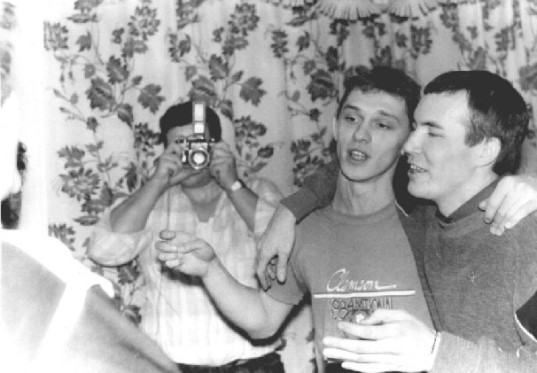 059 Встреча Нового 1990 года. Пр-к Островерх (с фотоаппаратом), л-т Давыдов (в центре), ст. л-т Киямутдинов. |