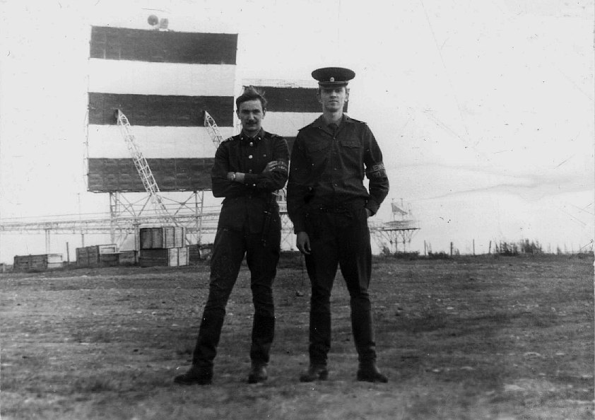 054 Справа – любитель спортивной статистики и фанат «Эдмонтон Ойлерз», оператор котельной 4-го расчета по прозвищу «Студент» (фамилия забыта), слева – механик дальней связи 4-го расчета Владимир Подоляк. 1988 г. |