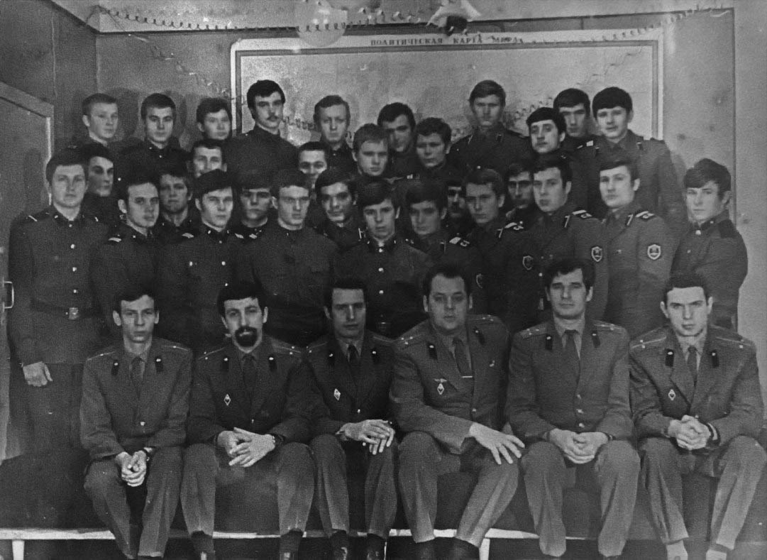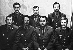 086 Офицеры "Алмаза". Сидят: Александров, Клёнов, Черников, Баранов. Стоят: Бердоносов, Соколовский, Парсаданов. Декабрь 1972 |