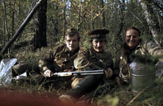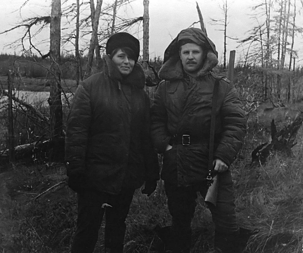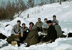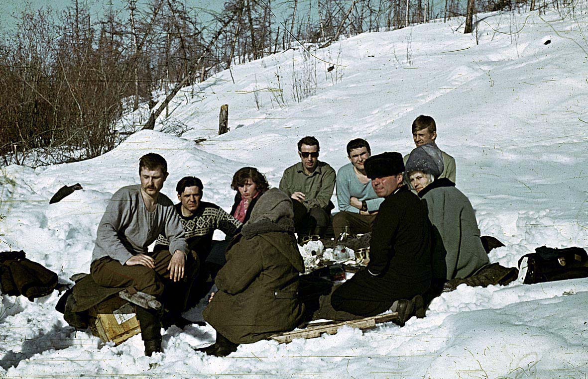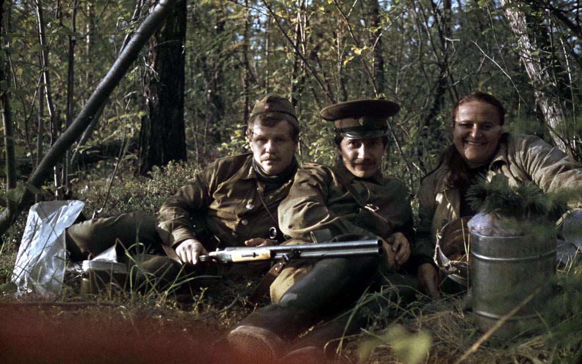 089 В.Баранов, А.Бердоносов, Т.Черникова. Отдых на склоне сопки после тихой охоты. 1972 год |