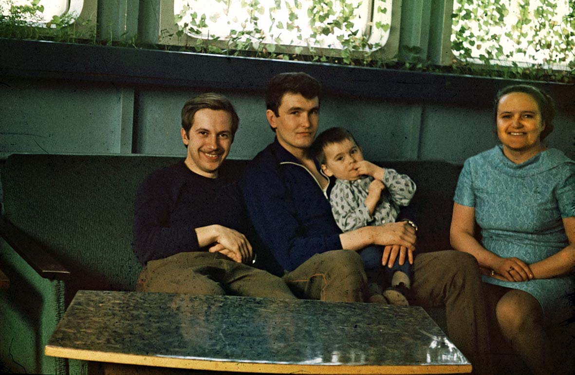 090 А.Бердоносов, В. и И.Тулуповы, Т.Черникова в кают-компании. 1973 год |