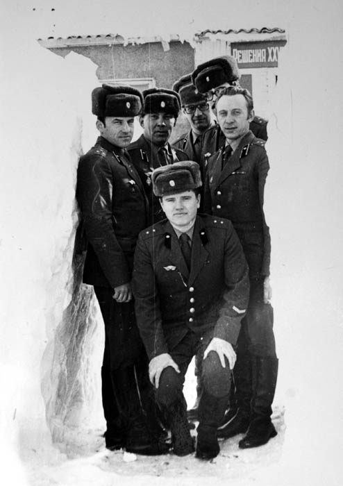 Комиссия "Амура-1" на станции. Следуют на обед. (1982-86)
