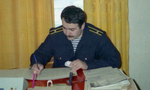 049 С-т Егоров на подготовке типичного северного подарка. 1990 год
