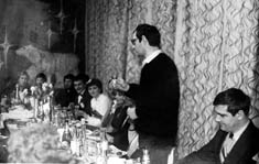 077 Владимир Румиевский произносит тост. Справа на снимке - начальник центра Васюнин. (1982-86) |