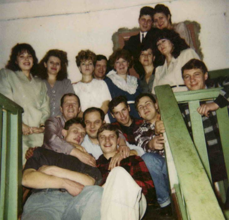 Слева-направо, сверху-вниз: Нечаев Александр, его жена Татьяна, Сухорукова Елена, Кириенкова Ольга, Марина Черепанова, Кононов ??, Комарова ??, Кононова ??, Ларионова, Комаров??, Олег ??, Ложкин Дмитрий, Ларионов Валерий. Целовальников Сергей, Сафронович ??, Андрей Сухоруков![]()
