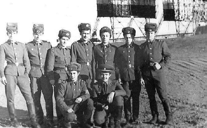 Стоят: механик-энергетик ряд. (???), механик ДС ряд. Ревякин, механик РРС ряд. Шабалин, техник РРС мл.с-т Гатанюк, слесарь-сантехник ряд Братков, слесарь-сантехник ряд. Мошкин, техник-энергетик мл.с-т Калачев, сидят техник РРС мл.с-т Кустов, л-т Фёдоров