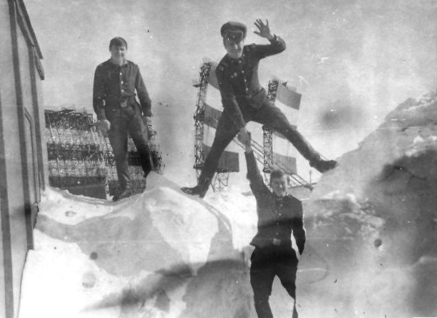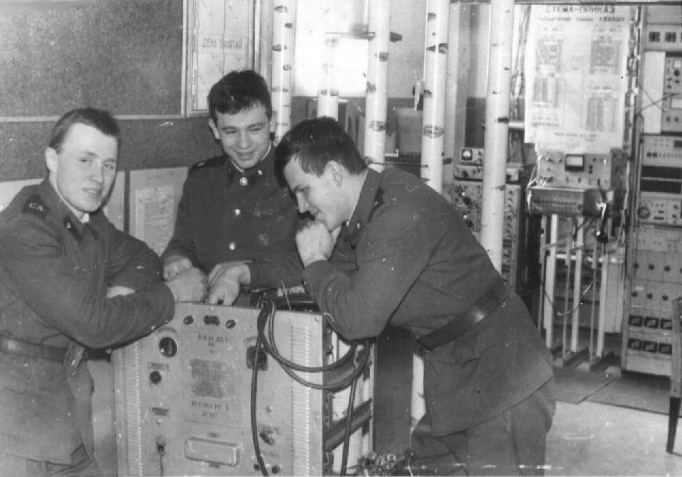 110 Техник РРС Ковтуненко, техник РРС Новиков, техник ДС Капустин. Зима 87-88 |