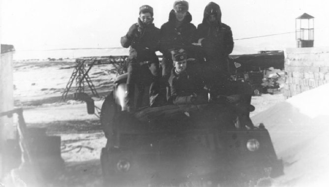 Слева направо: Нечаев Александр Николаевич, Кононов, Давыдов?, Целовальников Сергей. На заднем плане Т-170 и торец дома на «Баку».