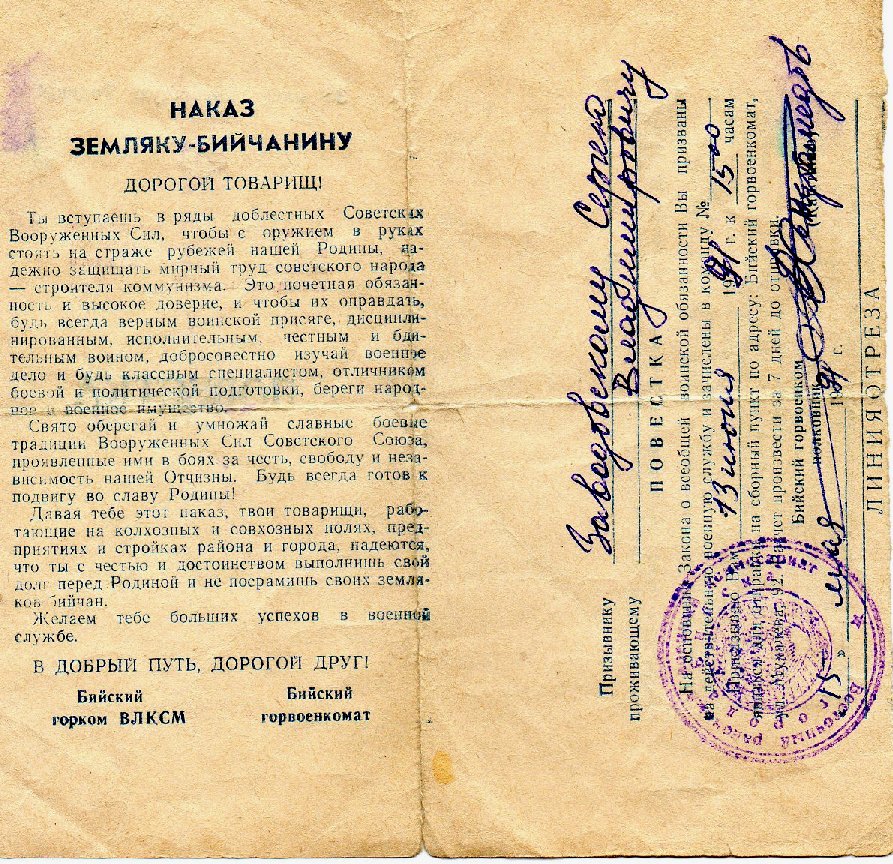Повестка С.В.Заводовскому
