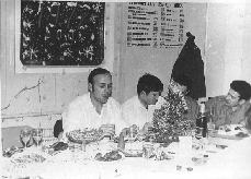 087 На переднем плане слева направо: жена работника годрографического предриятия, жена команди-ра В.Клевцова, жена В. Шанцева. Мужчины заняты едой |