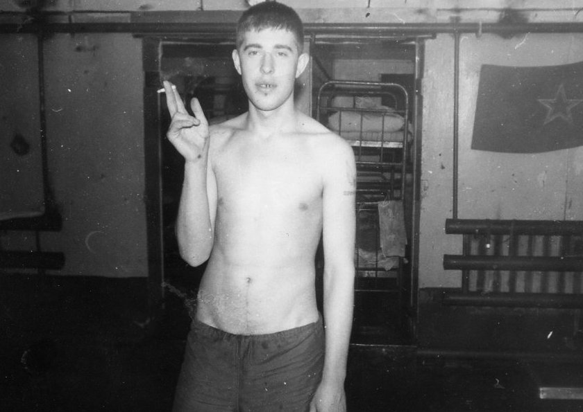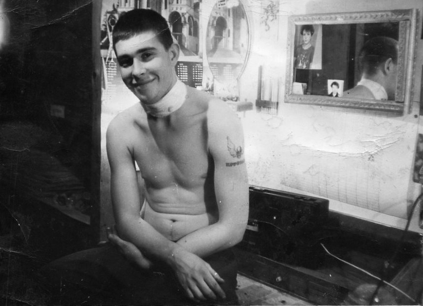 147 С.Заводовский, О.Игнатьев, Гайкалов, А.Ковынев и Д.Разоренов в каптерке. 1993 год |