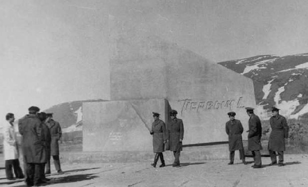 011 Энергетики у памятника первооткрывателям Норильска, весна 1974 г. |