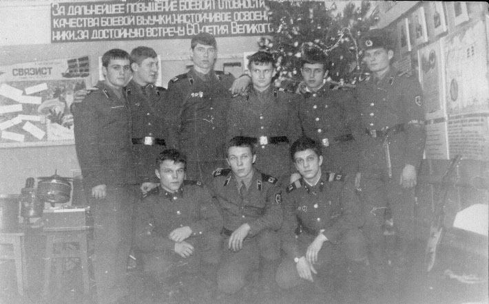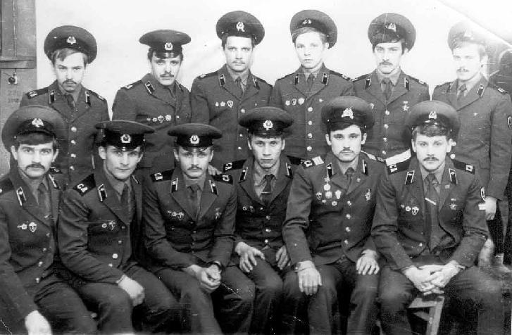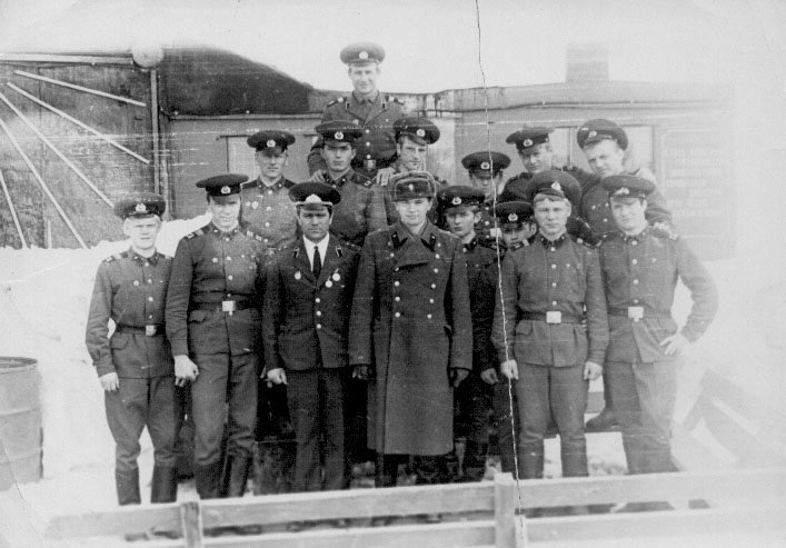018 Призыв 1975-77г. с командиром и старшиной. Слева направо 1-й ряд О.Румянцев, С.Четвертаков, Рябуха, В.А.Шамарин, (остальных не помню).крайний справа Остапенко, наверху один Гордиенко
