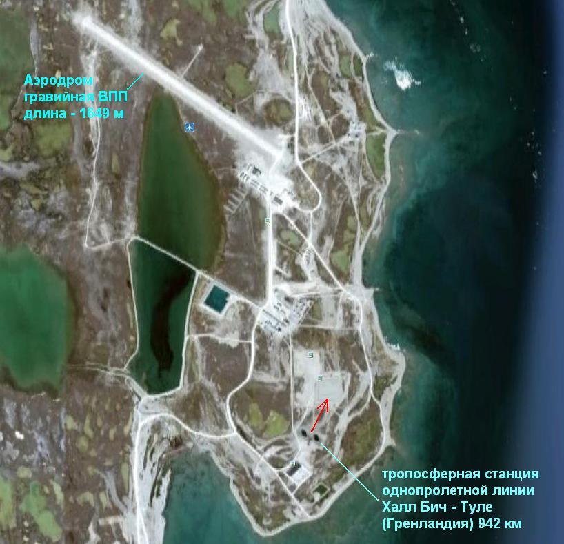На самом нижнем снимке - антенны и техздание тропосфеной однопролетнй линии Туле - Налл Бич. Размер антенн - 36х36 метров. Аппаратура AN/FRC-101 американской компании REL. Передатчики имели мощность 100 КВт. Дистанция - 942 км.