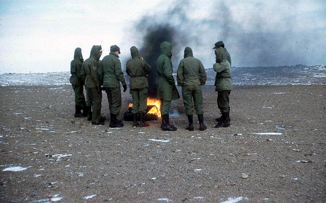 028 Жгут костер для того, чтобы пилоты самолета сбрасывающего почту могли опрелелить направление ветра. Март 1954 года |