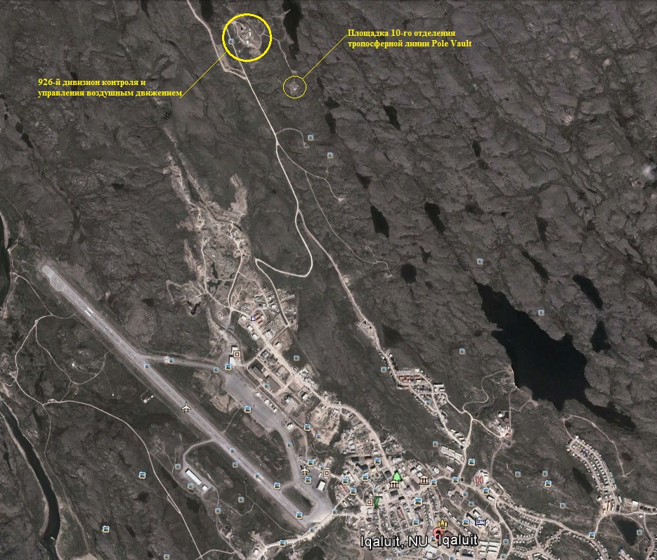 Общий вид поселка прежде назвавшегося Фробишер Бэй (ныне Икалут), аэродрома и площаки прежней РЛС